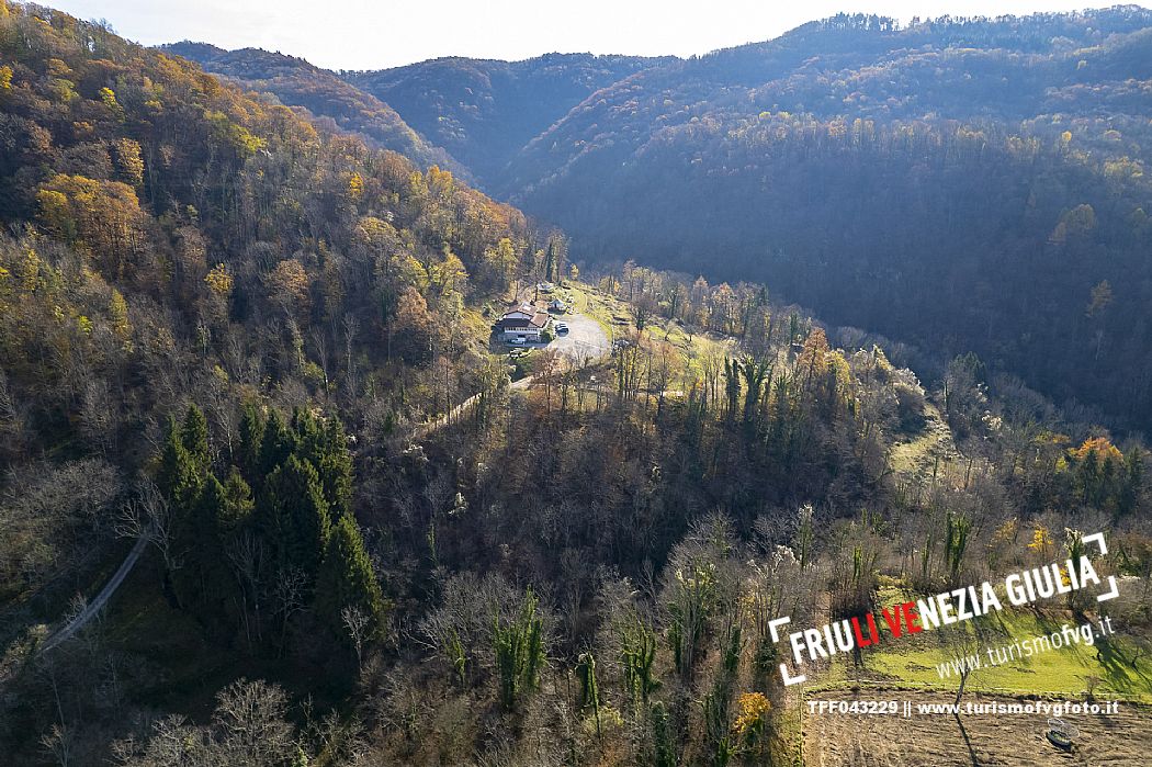 Vista panoramica verso sud sulla pianura friulana dalle pendici del Monte Stella, sopra il Fiume Torre. A sinistra Tarcento.