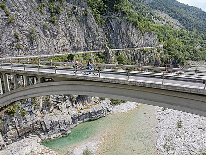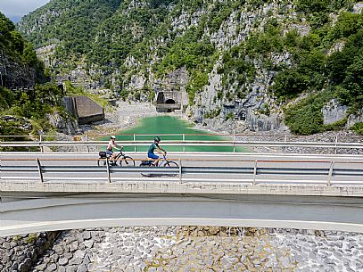 A couple with children wearing winter ski clothing on the slopes of the Zoncolan ski area, Carnia, Friuli Venezia Giulia, Italy.