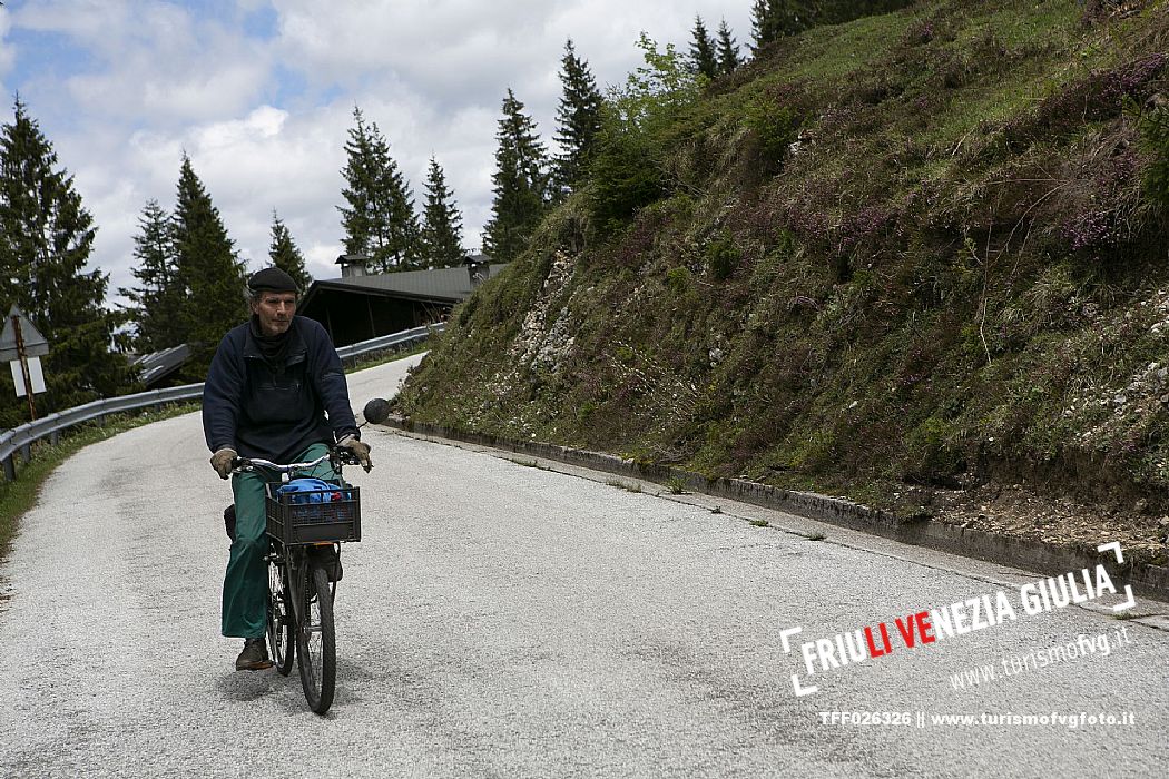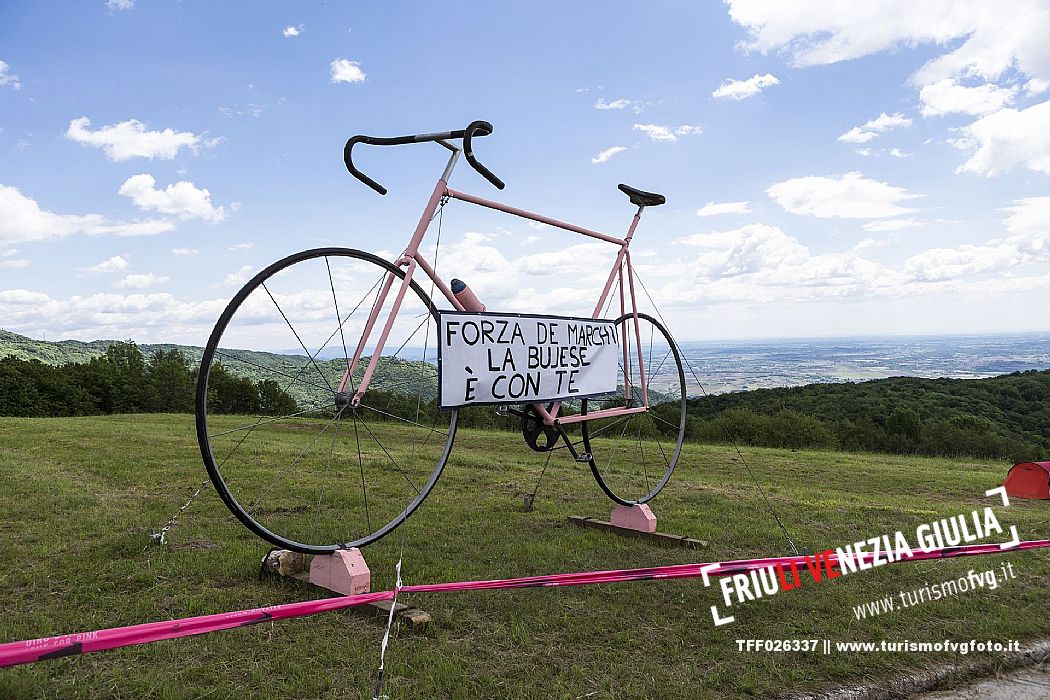 Cyclists in the courtyard of the Mosaic School of Friuli in Spilimbergo.