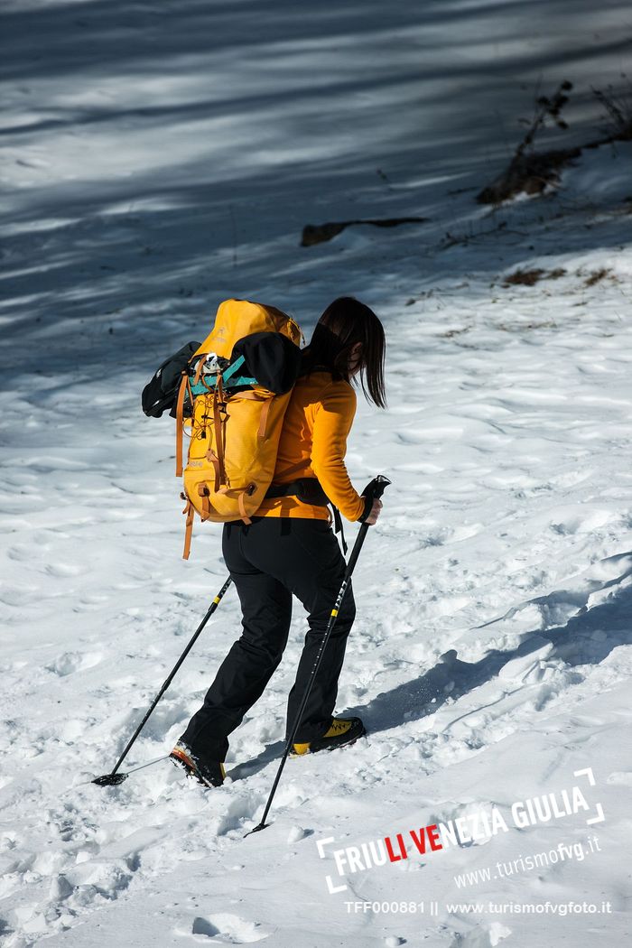 Friends trekking in the Julian Prealps Park, from Coot hut to Canin hut. Julian Prealps Natural Park. MABUNESCO