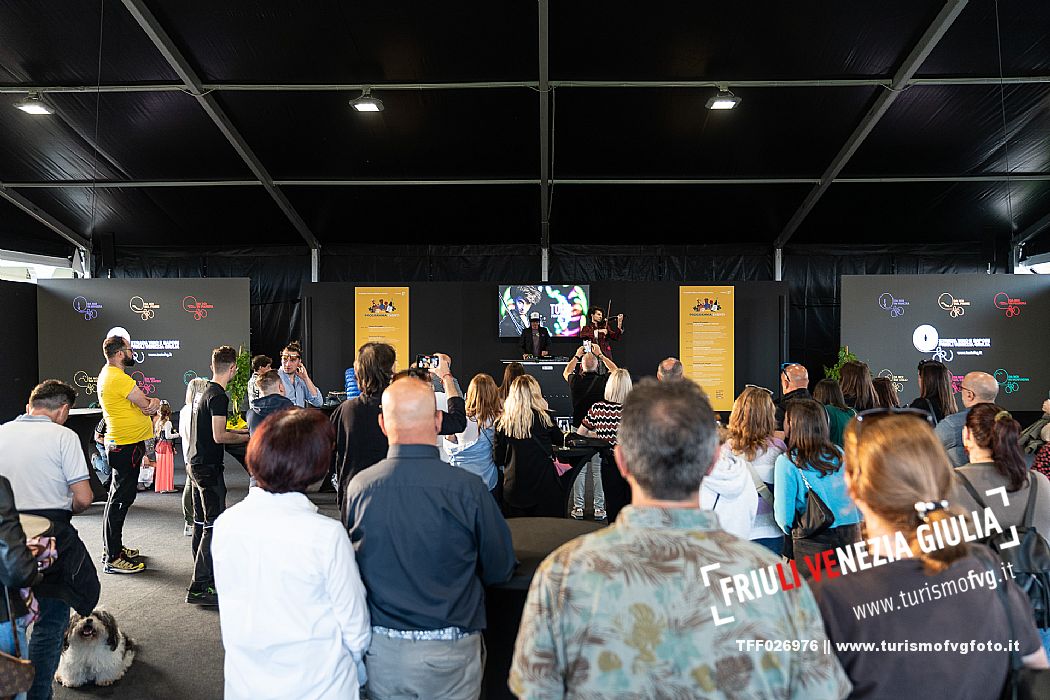 Ciclisti pedalano verso Villa Manin