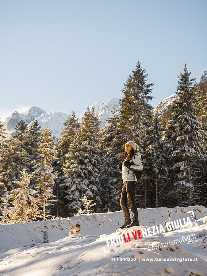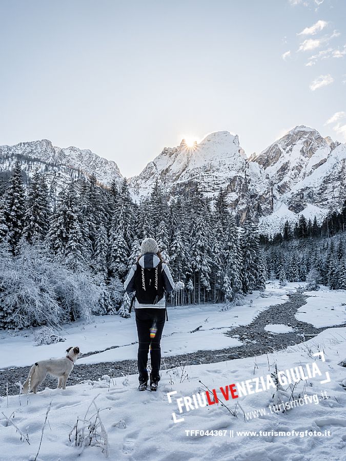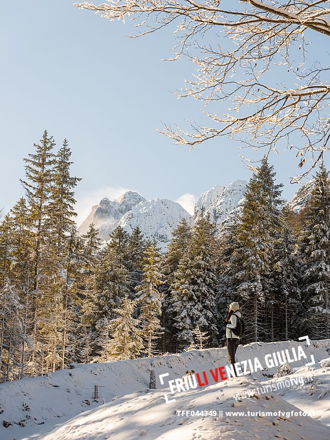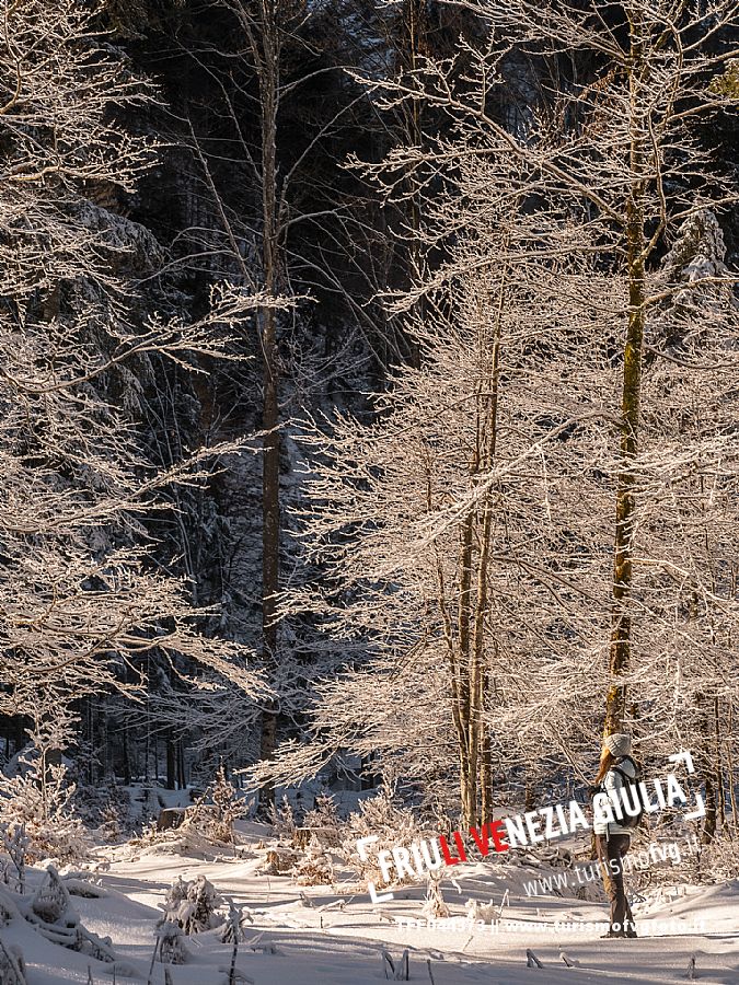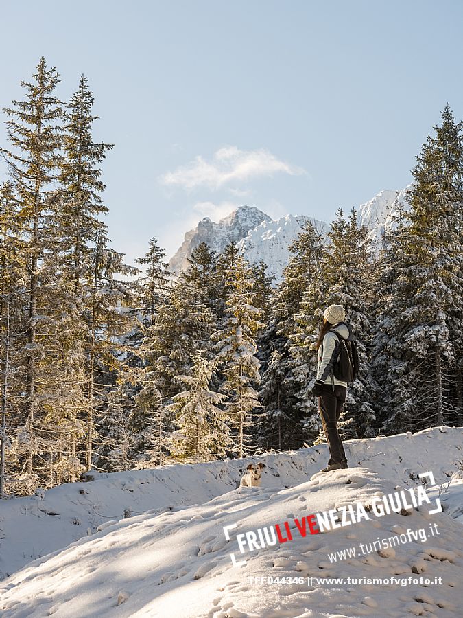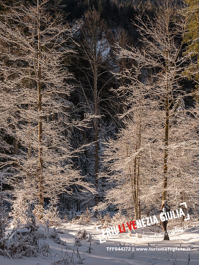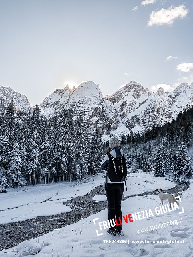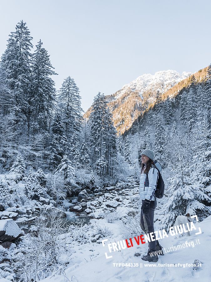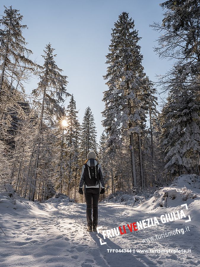 Facile passeggiata con le ciaspole o con scarponi invernali, adatta anche ai bambini, che raggiunge dalla frazione di Riofreddo una delle vallate più selvagge e belle del Tarvisiano e delle Alpi Giulie, Cave del Predil