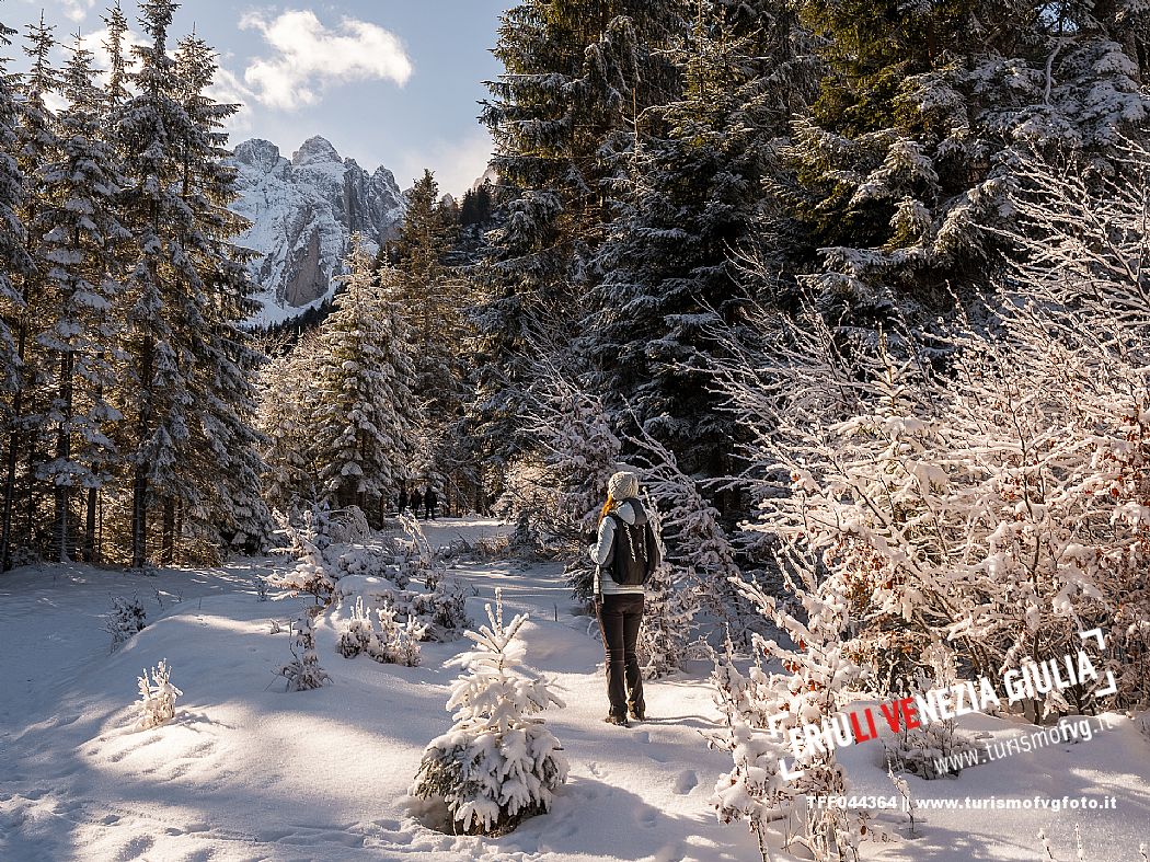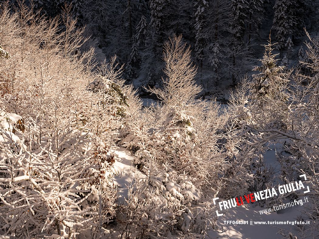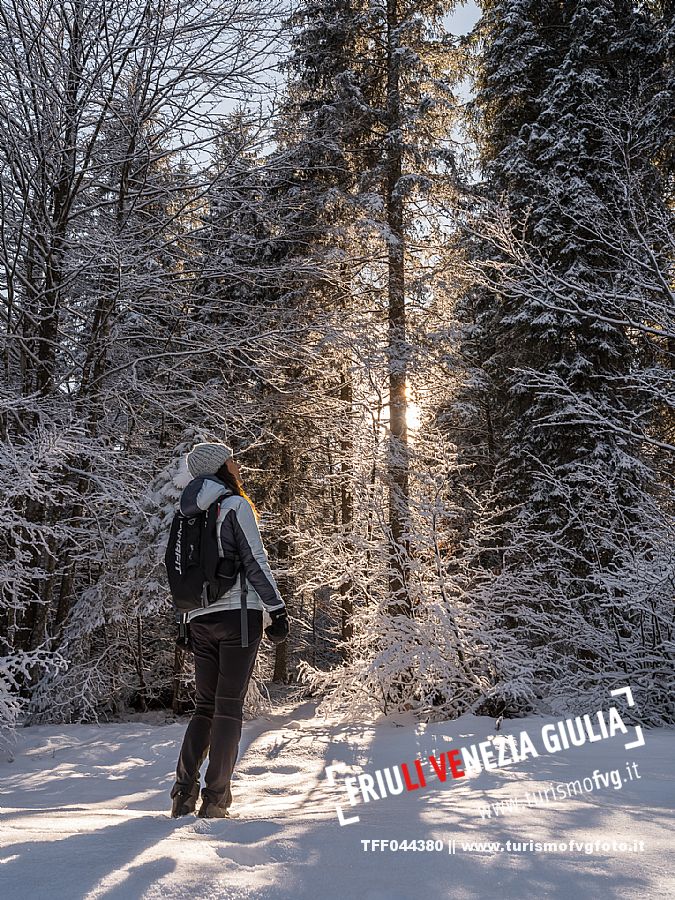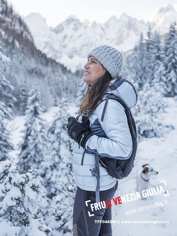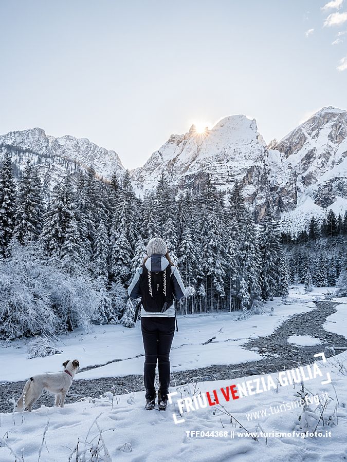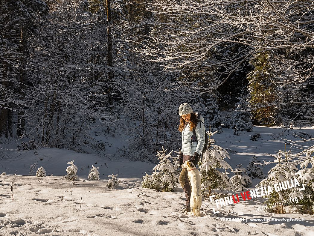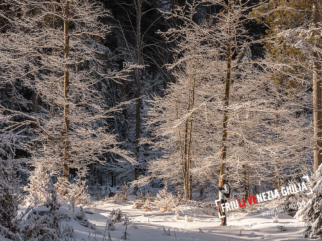 Facile passeggiata con le ciaspole o con scarponi invernali, adatta anche ai bambini, che raggiunge dalla frazione di Riofreddo una delle vallate più selvagge e belle del Tarvisiano e delle Alpi Giulie, Cave del Predil