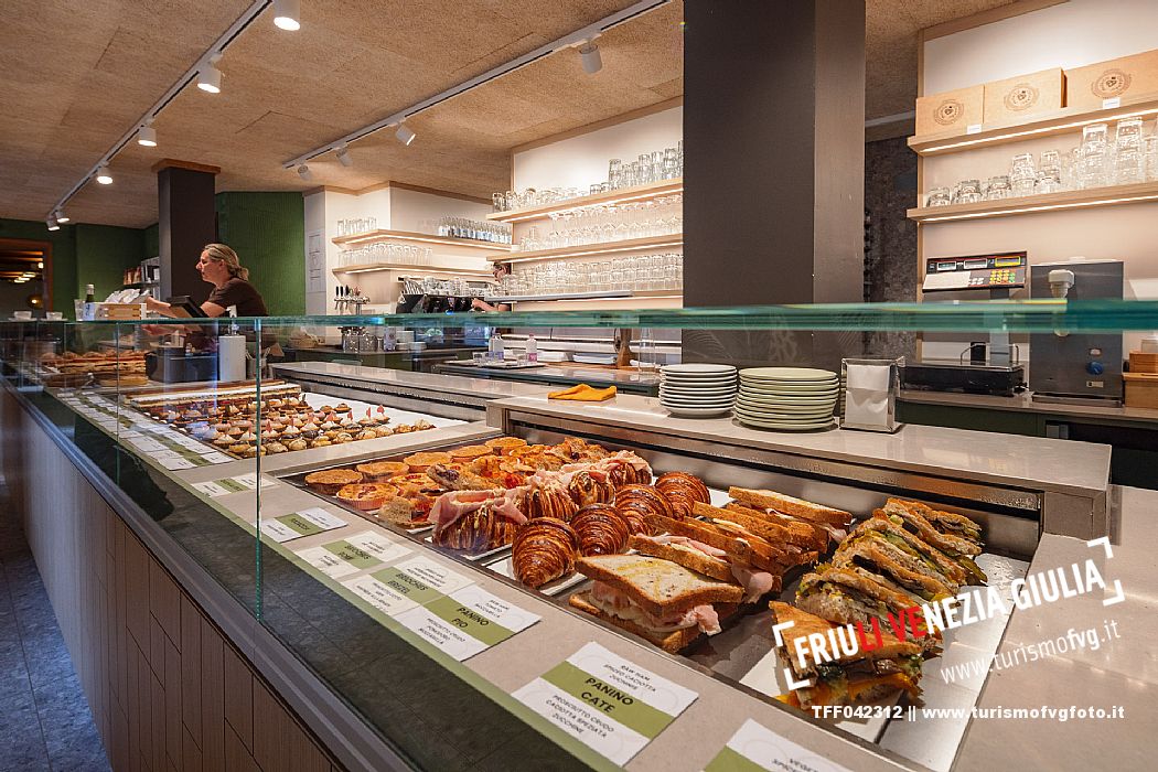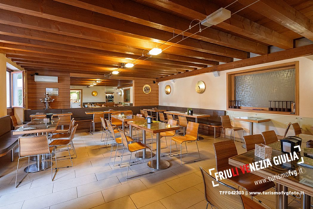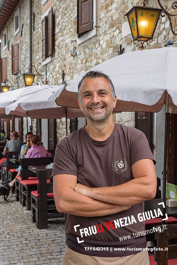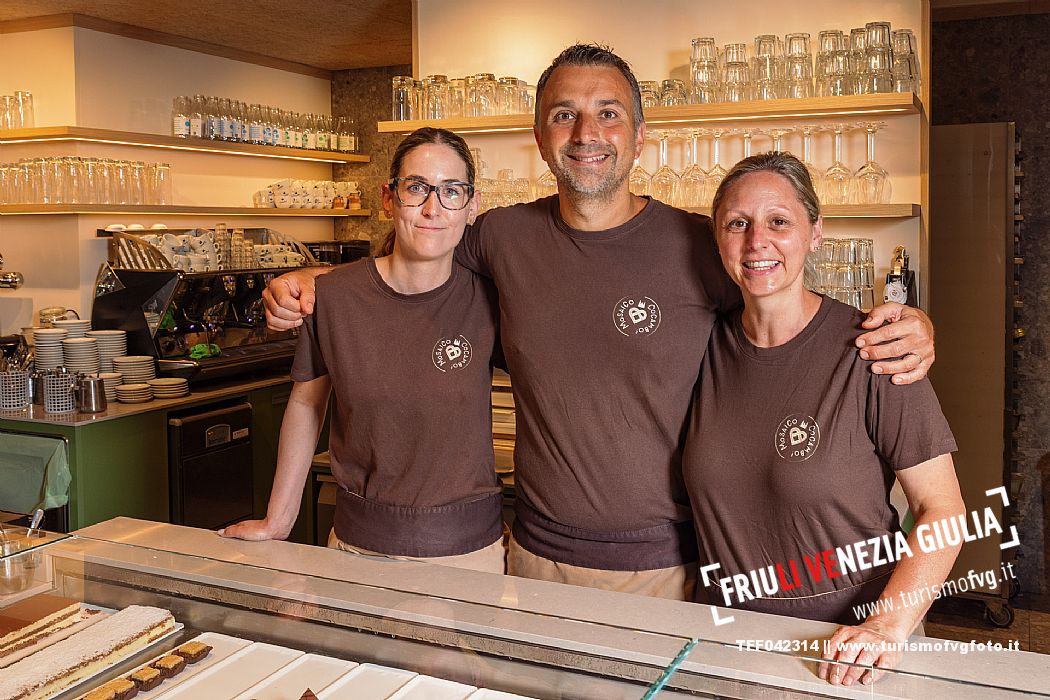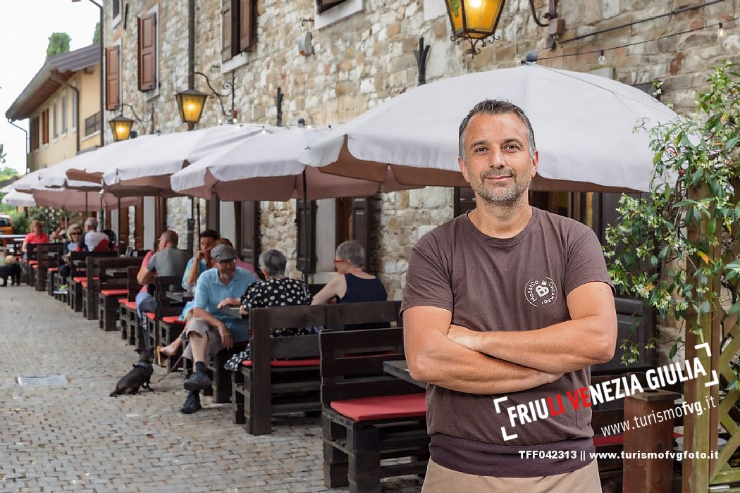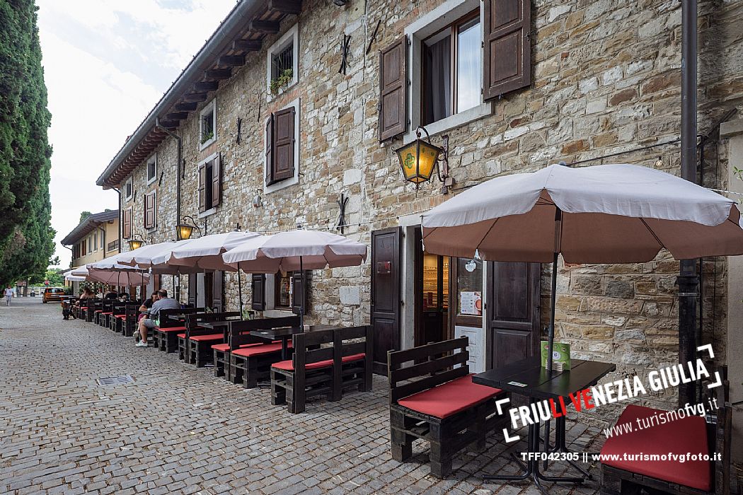 Ciclisti nella corte della scuola mosaicisti del Friuli a Spilimbergo