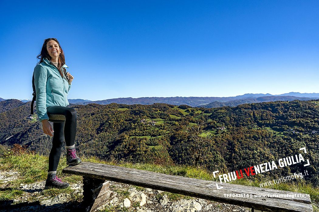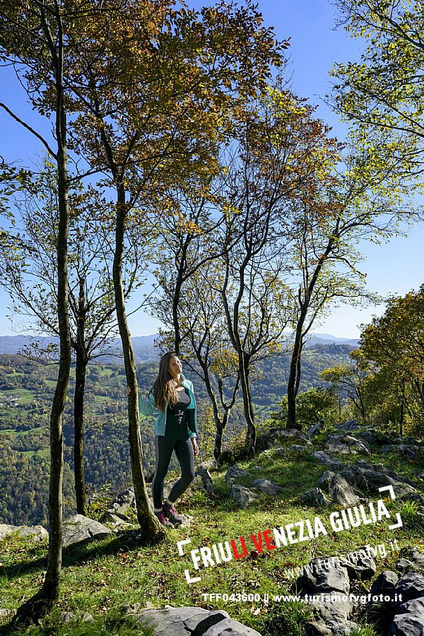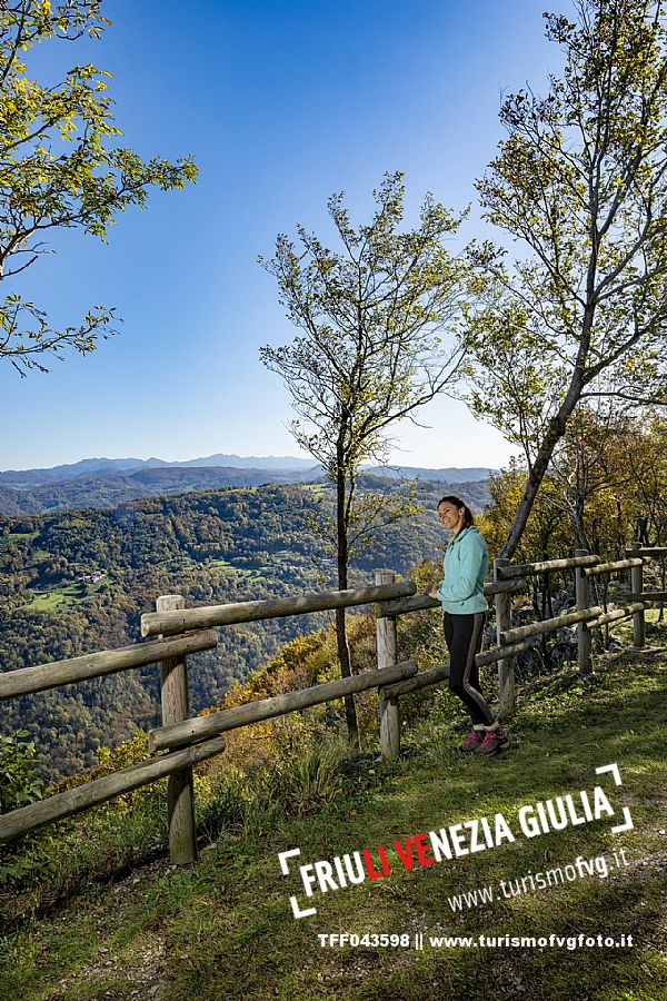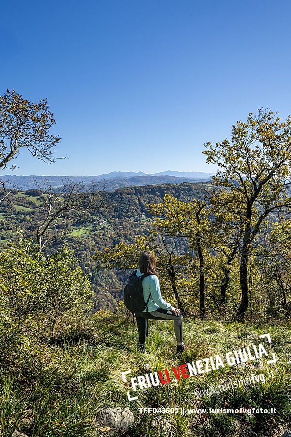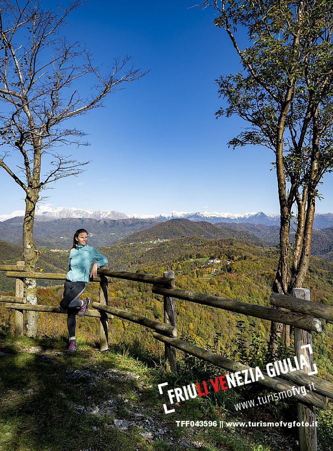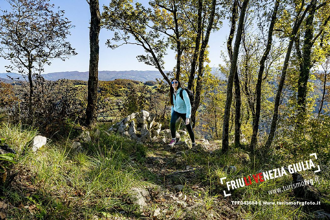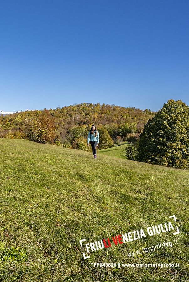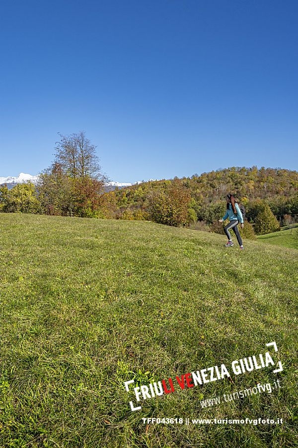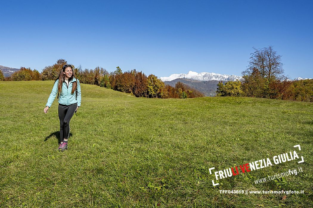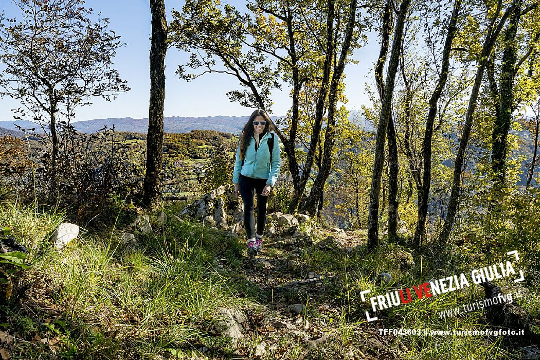 Anello dei Prati di Tribil in autunno Camminando sul sentiero e ammirando il panorama verso la vallata del Judrio.