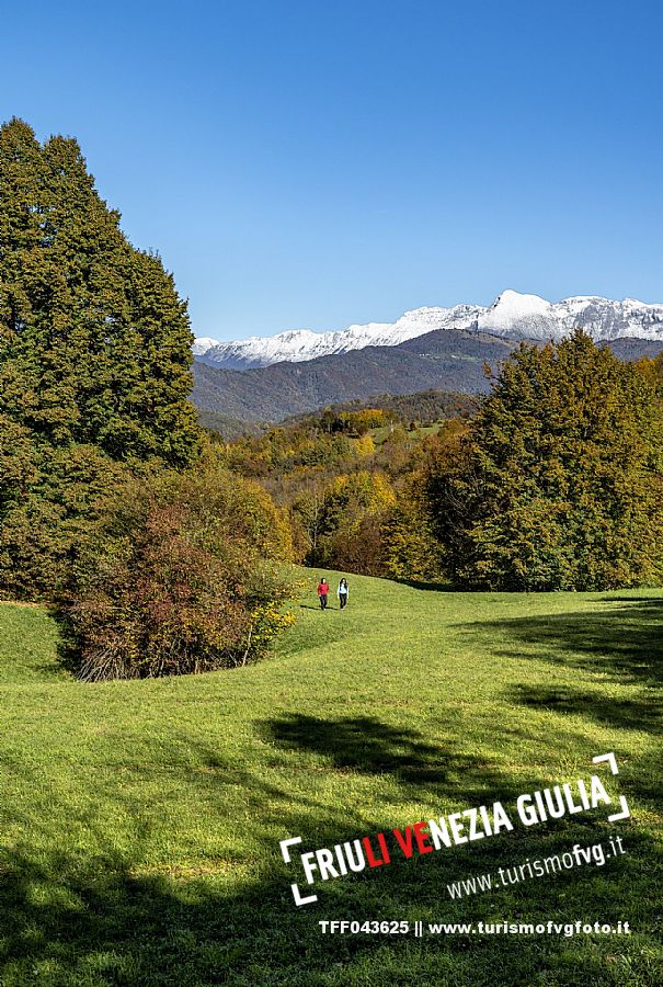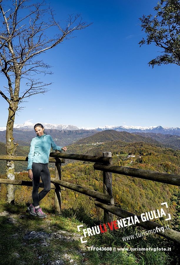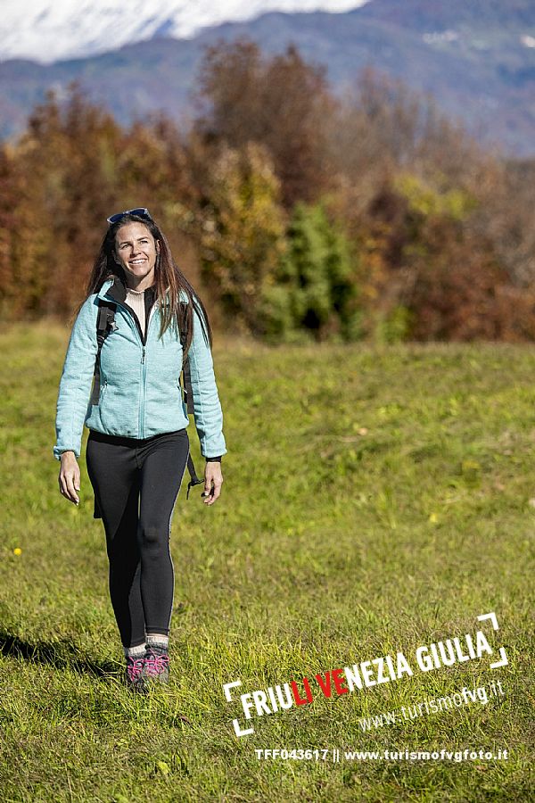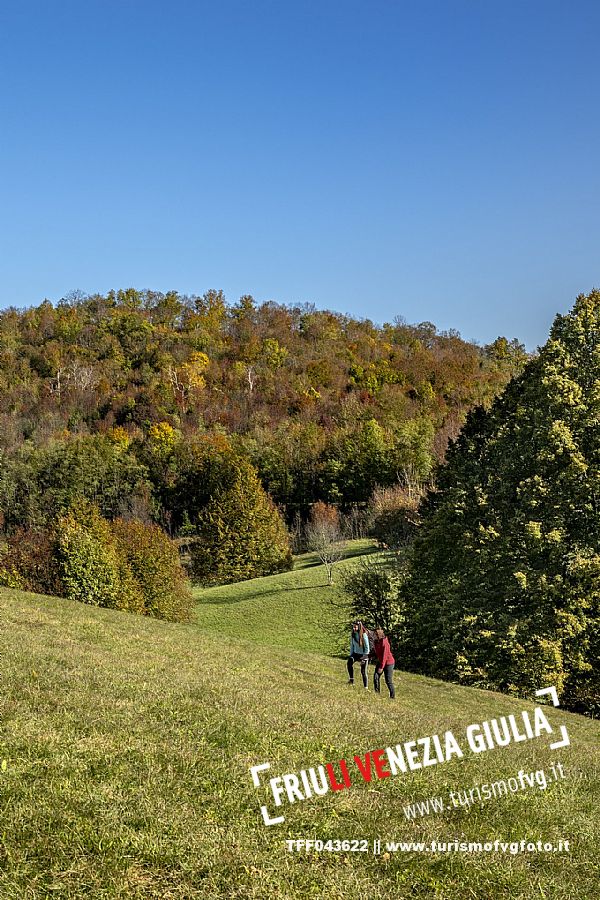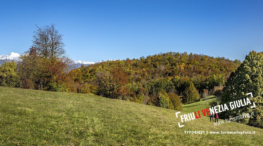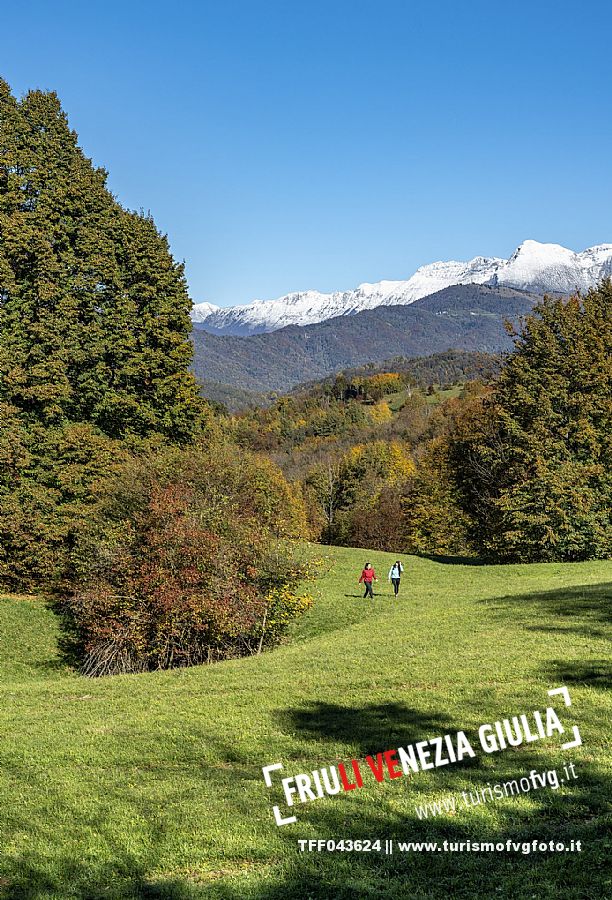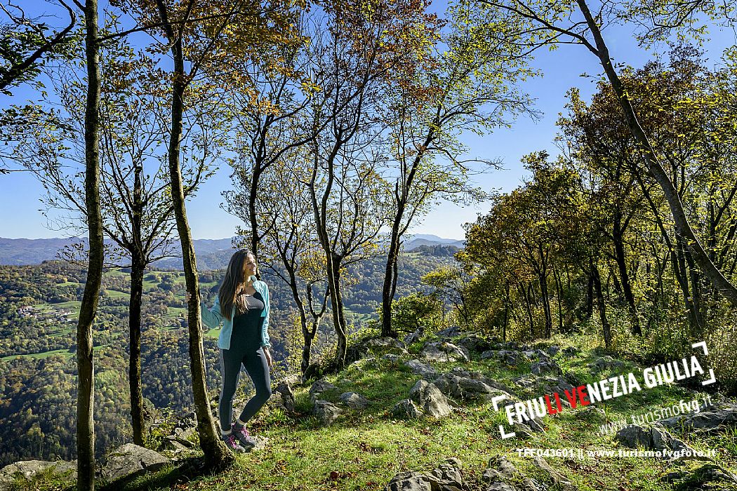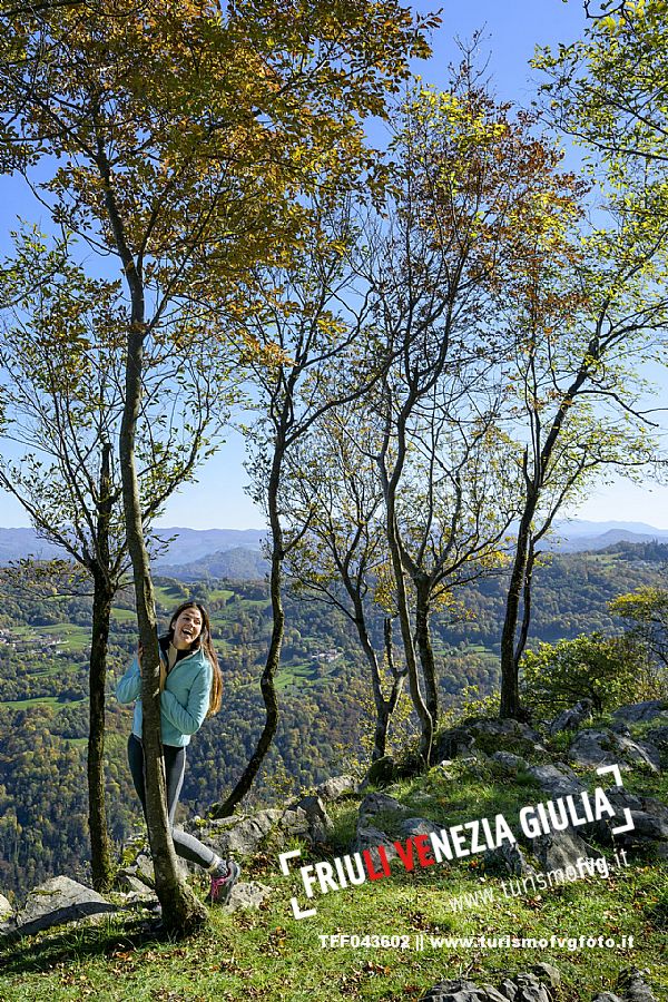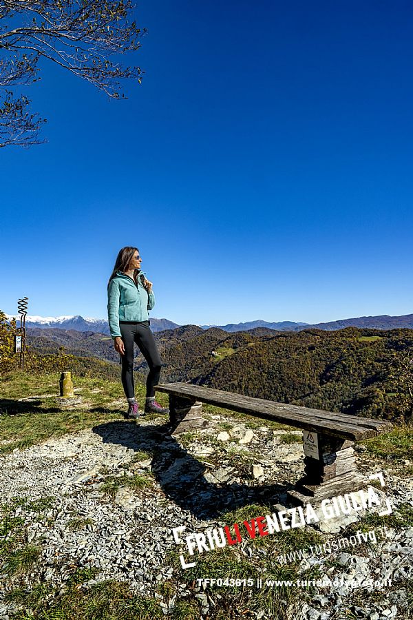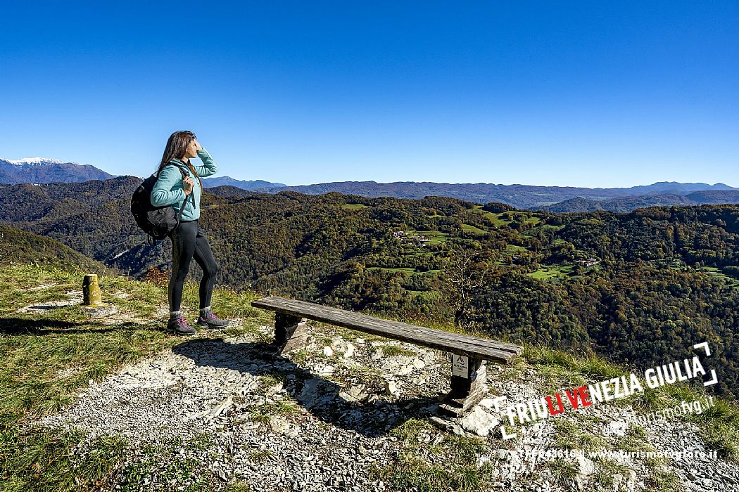 Anello dei Prati di Tribil in autunno Camminando sul sentiero e ammirando il panorama verso la vallata del Judrio.