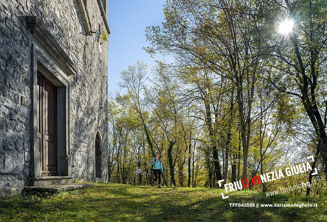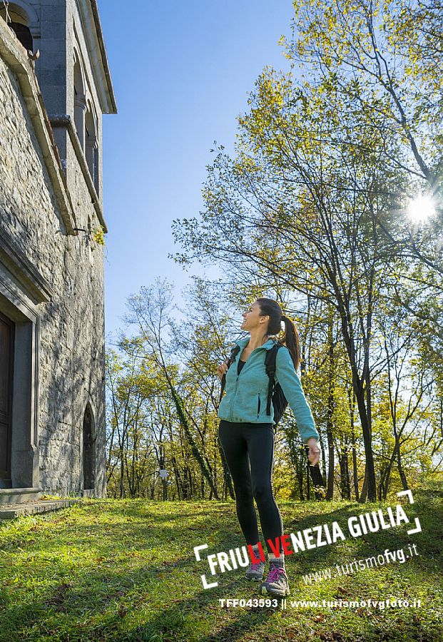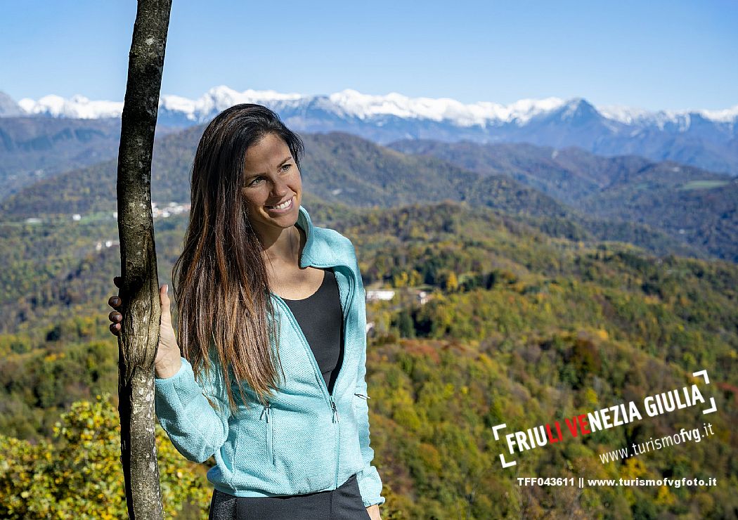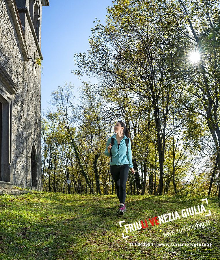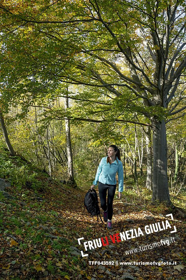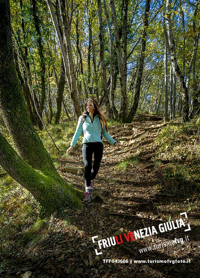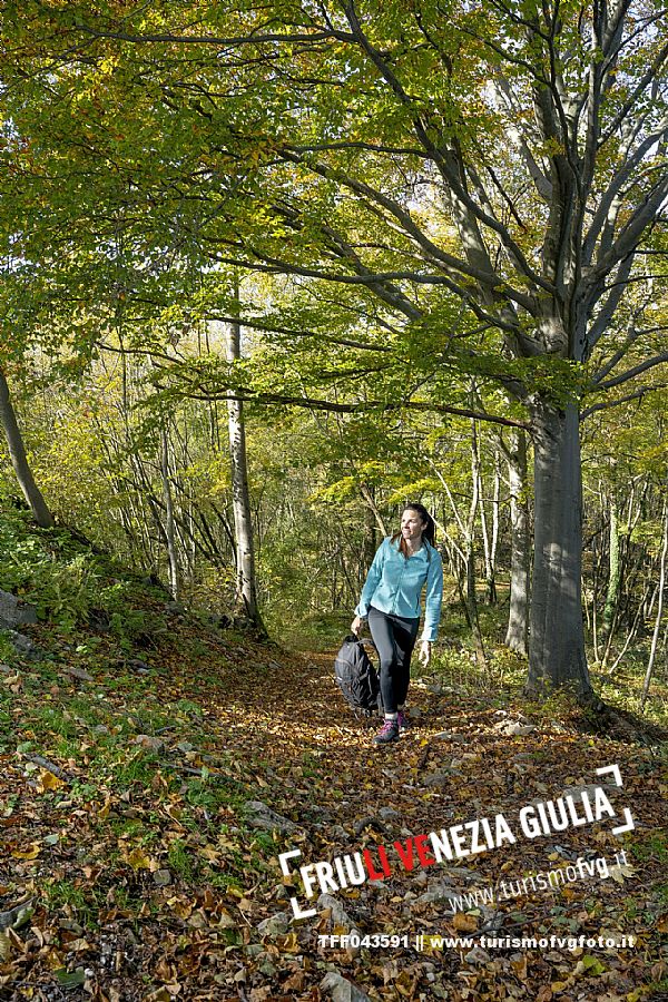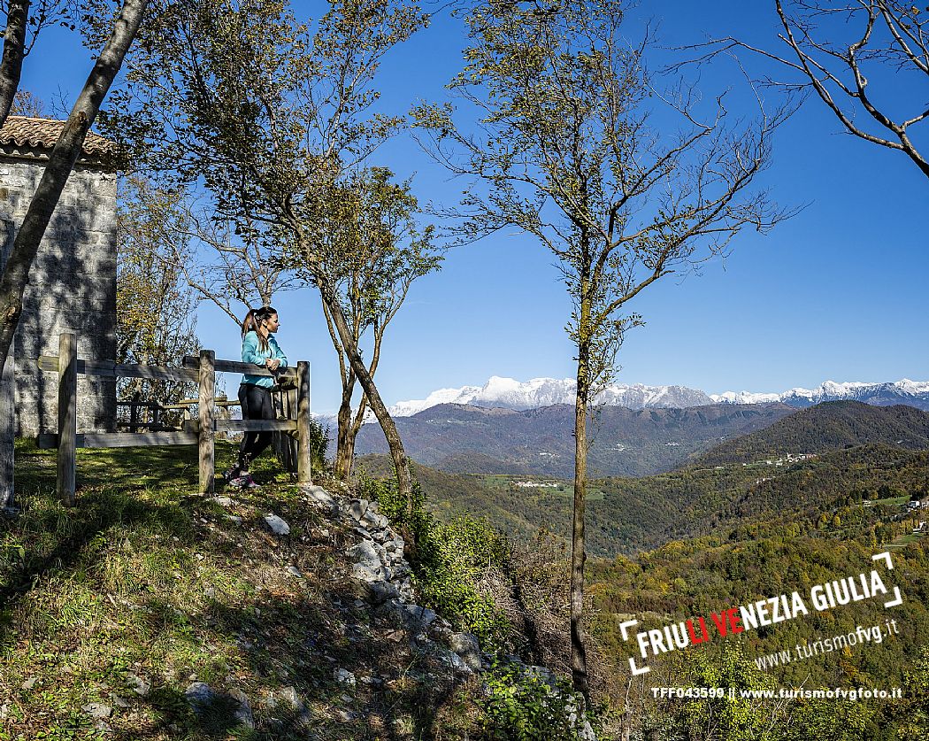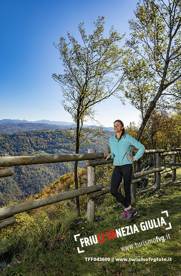 Anello dei Prati di Tribil in autunno Camminando sul sentiero e ammirando il panorama verso la vallata del Judrio.