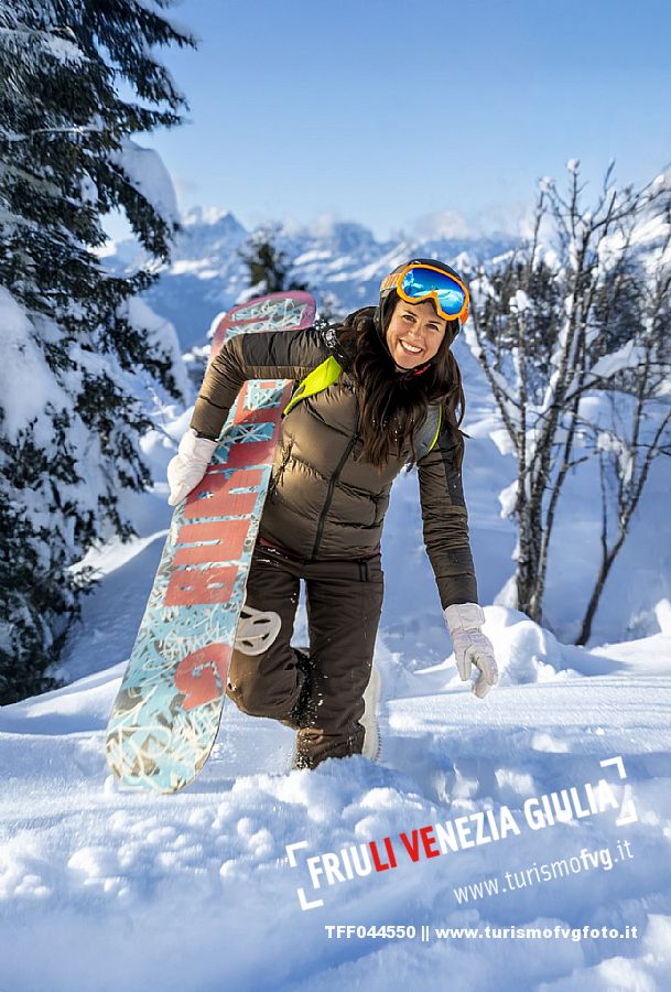 Giovane Ragazza posa sulle piste dello Zoncolana in Carnia
